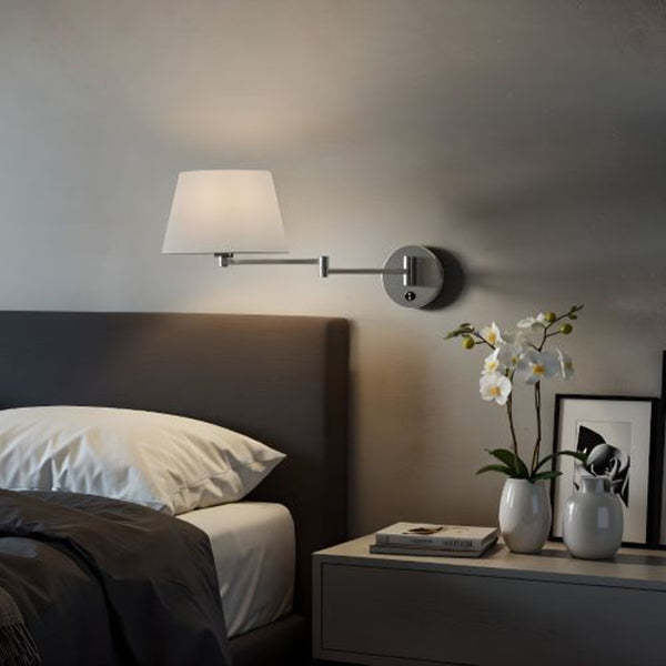 Wandlampvoet met een horizontale, verstelbare scharnierarm, ideaal te combineren met lampenkappen met een E27-schroeffitting, zoals de AMBITUS 24/15 en RON 15/20.