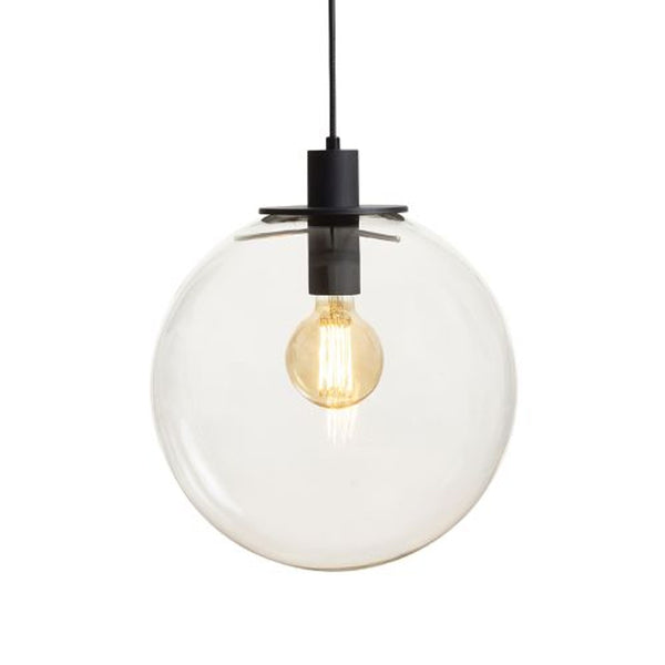 Glazen hanglamp in de vorm van een bol, geschikt voor een LED-lichtbron met een E27-fitting, met een maximale diameter van 80 mm. Kleine luchtbelletjes in het glas zijn veroorzaakt door het productieproces en duiden niet op een defect in de lampenkap.