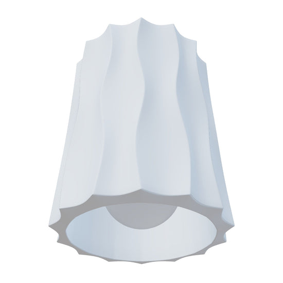 Plafondlamp van gips met een gestructureerd oppervlak in een golfpatroon, geschikt voor LED-lichtbronnen met een E27-fitting.
