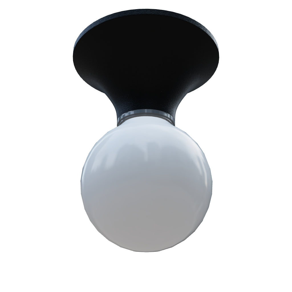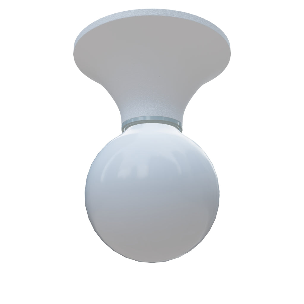 Plafondvoet van kunststof voor decoratieve LED-lichtbronnen met een E27-fitting. Geschikt voor vochtige omgevingen.