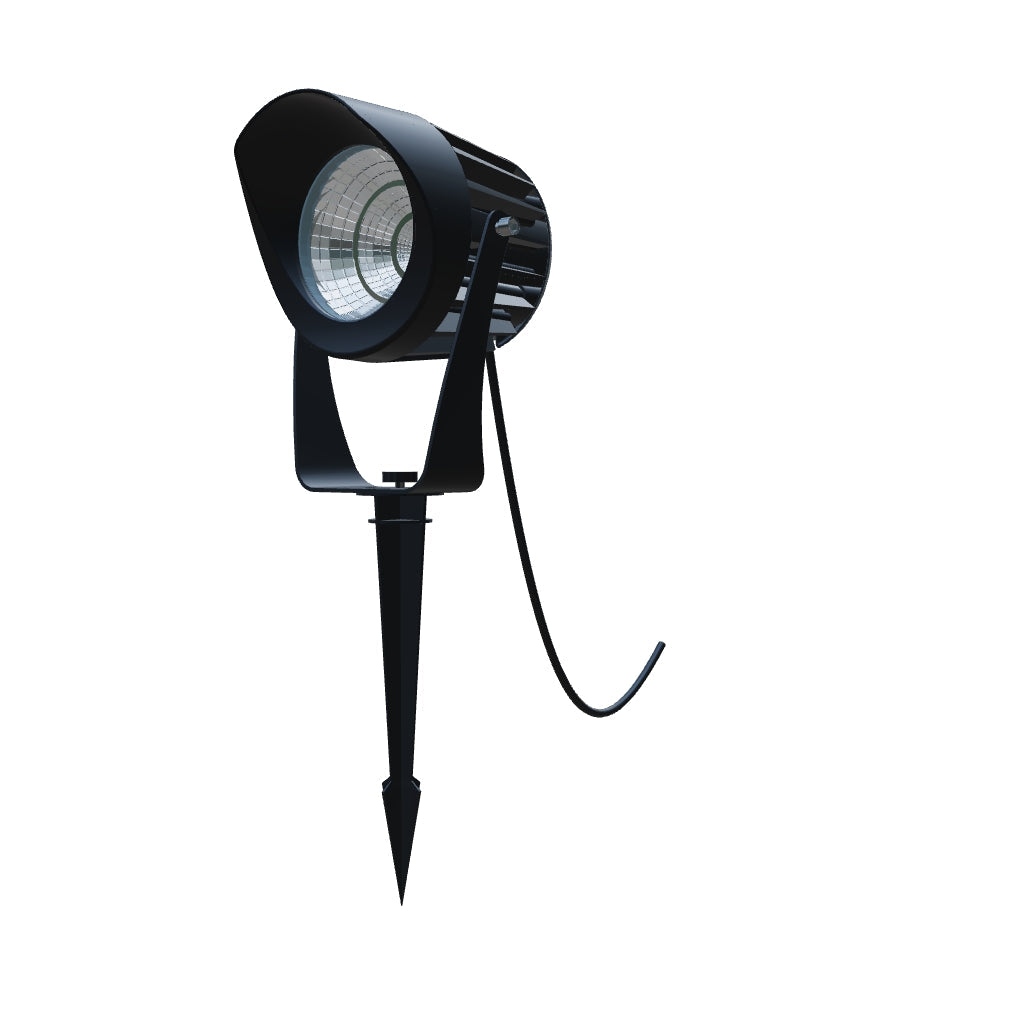 Buiten LED-spot met hoge prestaties op een grondspies. Wordt geleverd met een aansluitkabel zonder stekker aan het uiteinde!