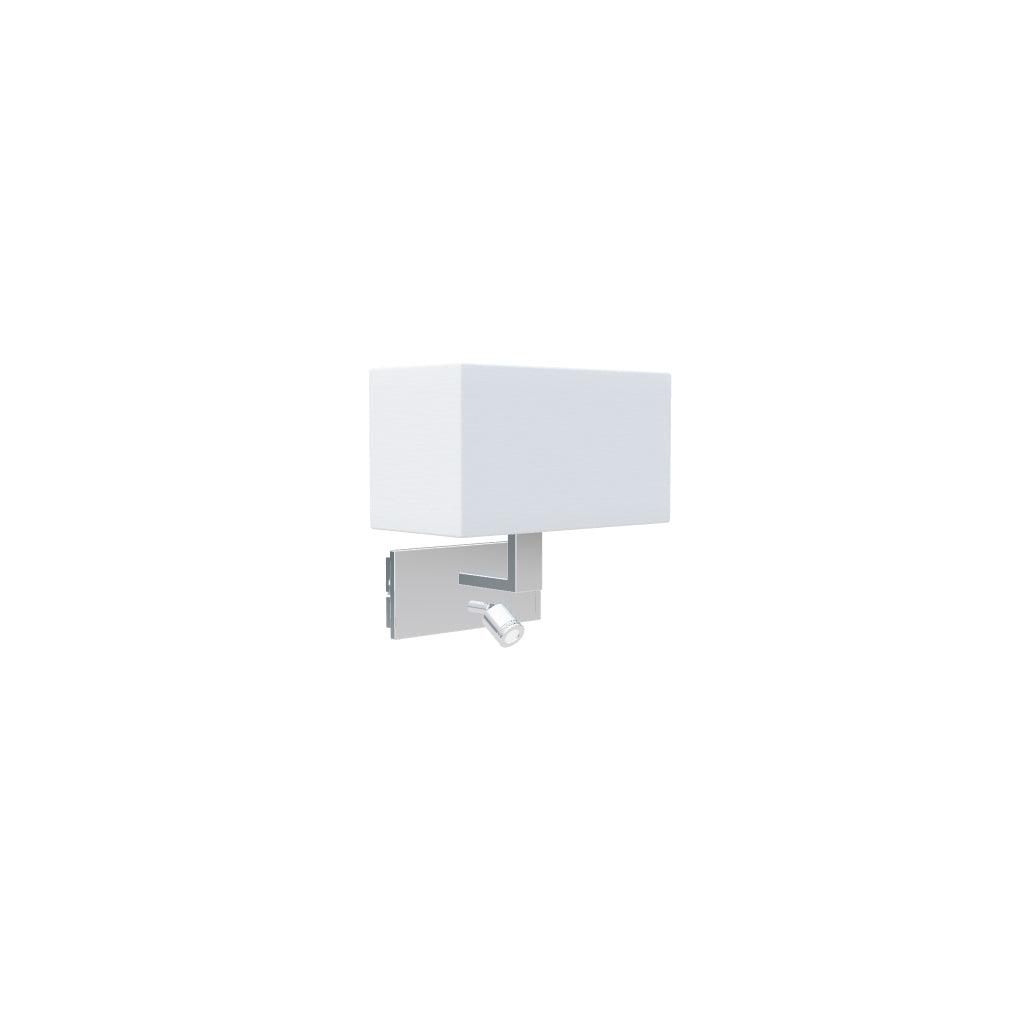 Wandlamp met gestructureerde textiel lampenkap en extra 3W LED reflector. De twee lichtbronnen zijn individueel bediend met een schakelaar op de basis.