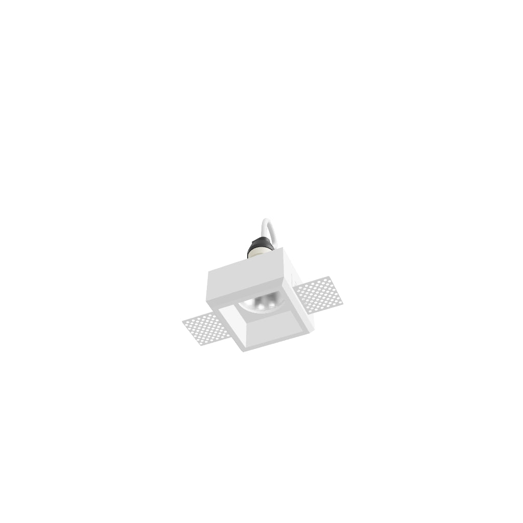 Gips lamp met vierkante opening en geen raam. De oppervlak kan worden geverfd met binnenverf. Geschikt alleen voor installatie in gipsplaat.