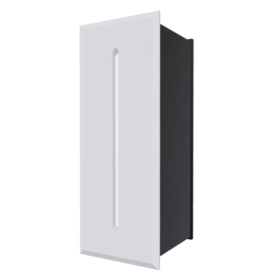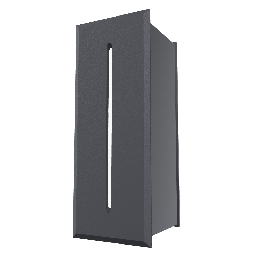 Verzonken buiten wandlap met ingebouwde LED. Licht schijnt door een smalle opening.