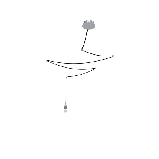 Vaiabele ophangset geschikt voor gebruik met decoratieve gloeilamp of het ophangen van lichte lampenkappen. Kan worden geinstalleerd op plafond of wand met muurbeugels op zwarte textiel kabel. De set omvat 4 zwarte kunststof muurbeugels of 4 metalen verchroomde muurbeugels. Muurbeugels kunnen ook apart worden besteld. Geschikte lampenkappen: ARISTA, ASPRO, DOUBLE, JAKARANDA, RON.