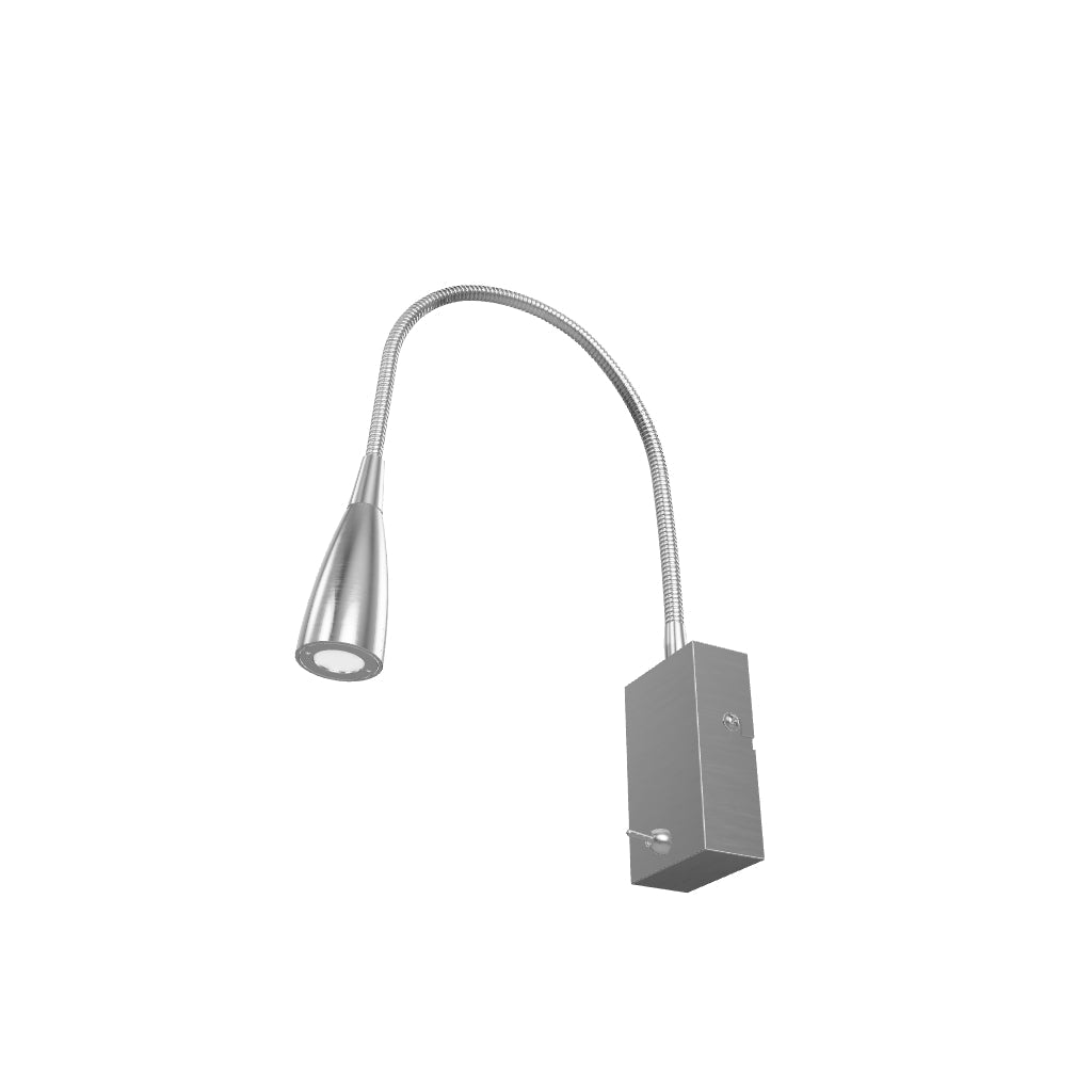 Wandspotlicht met geïntegreerde LED op zwanenhals. De schakelaar bevindt zich aan de onderkant van de basis.